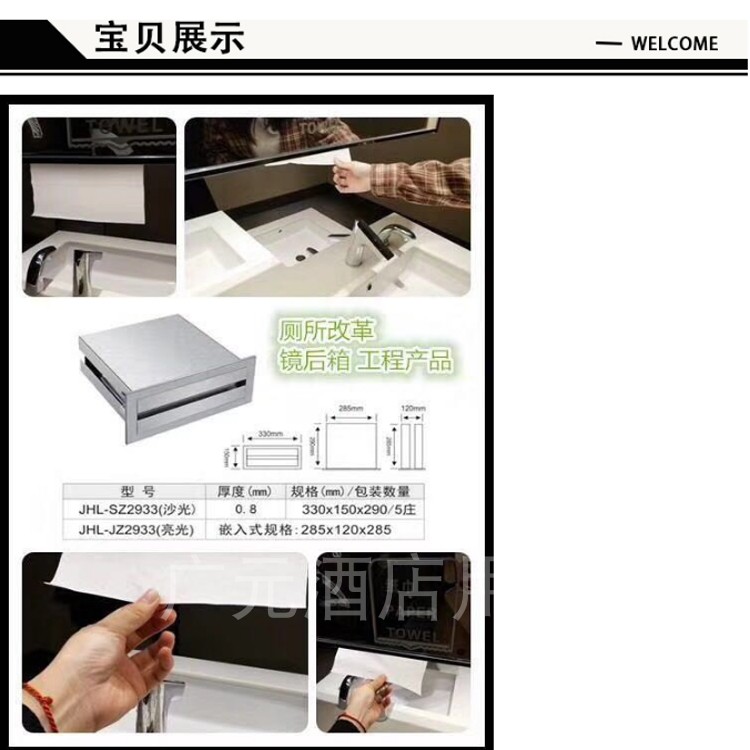 304 stainless steel waterproof paper towel box with trash can concealed embedded in the wall paper towel box frame pumping paper box