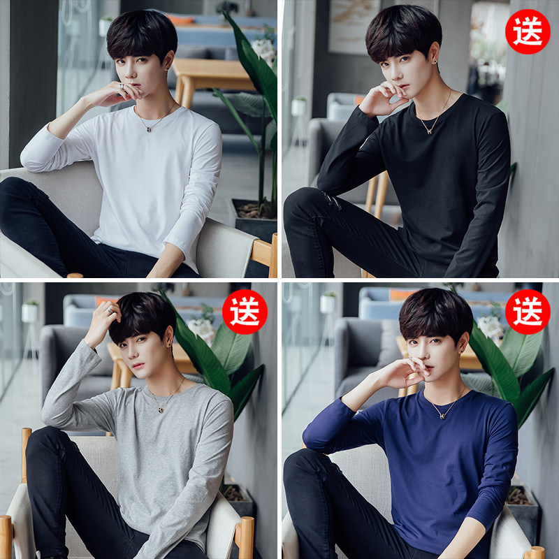 Autumn large size solid color inner clothes T-shirt boys Korean version of autumn clothes top Long sleeve T-shirt men's fashion clothes Men's clothing