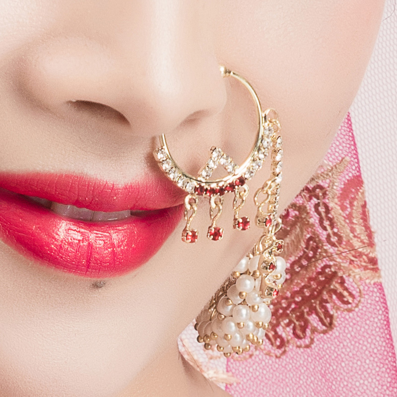 India and Pakistan style jewelry headdress earrings Two-piece set Imported nose ring Brow pendant Pasa jewelry accessories Iman India