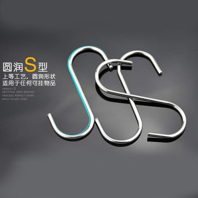 Stainless steel S hook Kitchen S-hook Drying school bag hook clothes S-shaped exhibition hook