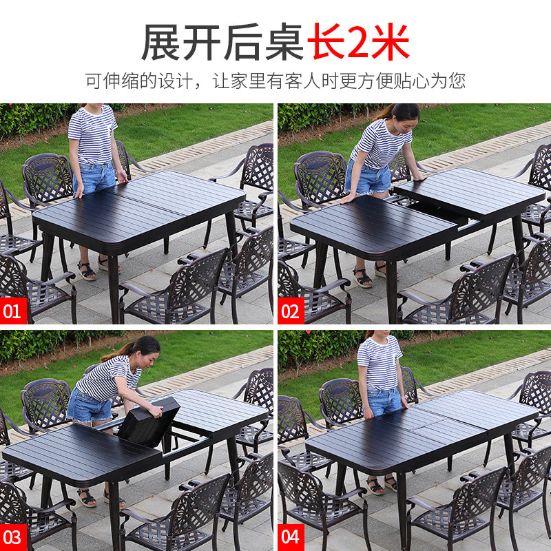 Rattan outdoor patio table and chairs aluminium alloy telescopic six-position cast aluminium outdoor leisure open air garden table and chairs long table
