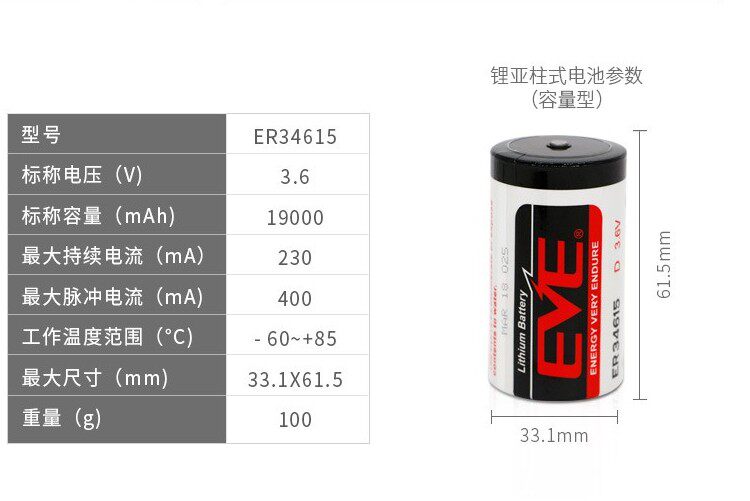 EVE Yiwei ER34615 lithium sub-disposable dry battery 3 6V water meter electric meter mechanical equipment power supply