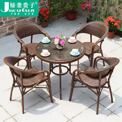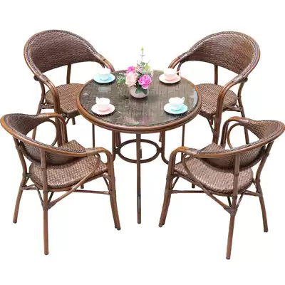 Balcony table and chair Rattan chair Three-piece outdoor outdoor courtyard leisure bamboo Teng chair Small coffee table Household rattan woven Teng chair