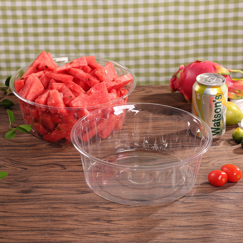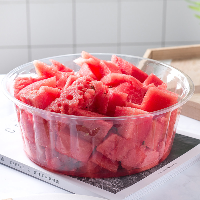 Factory direct selling thickened disposable transparent fruit box fruit and vegetable preservation round fruit salad packaging watermelon cutting box
