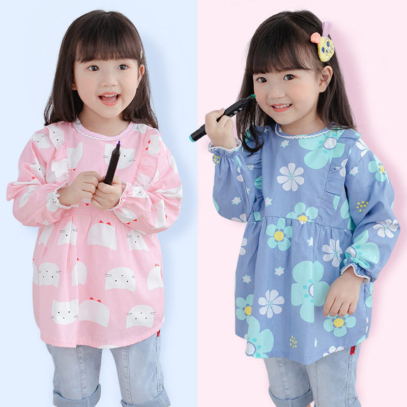 Baby Waterproof Hood Clothing Thin style Spring and autumn Anti-clothing Children girl Princess Skirt Hood Eat Long Sleeve Dress Waterproof Pure Cotton