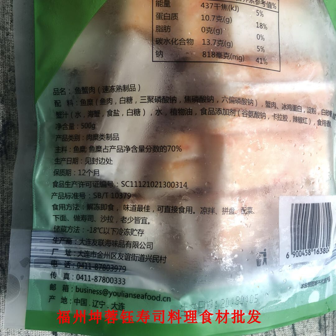 (Kun Rong Yu) Crab meat stick holding sushi Pure crab willow Dalian Youlian Love Mouth Fish Crab Meat 500g Pack