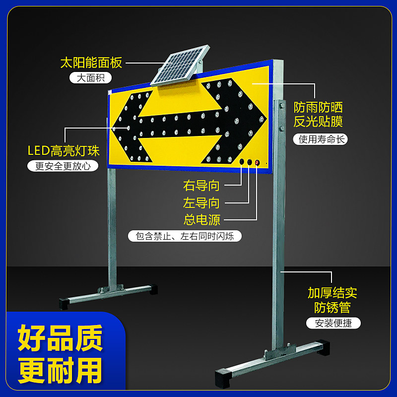 Low-profile one-way arrow light (left and right flip direction) Low-profile one-way arrow light (direction can be flipped) Low-profile solar two-way arrow light Low-profile solar front construction Solar speed limit sign