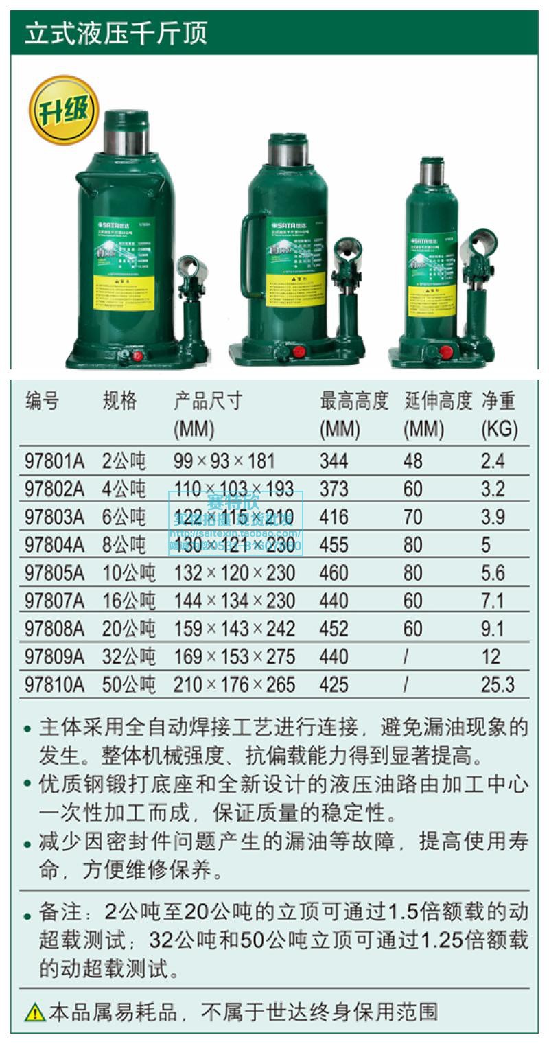 Shida 97801A hydraulic jack 2 tons Shida 97802A hydraulic jack 4 tons Shida 97803A hydraulic jack 6 tons Shida 97804A hydraulic jack