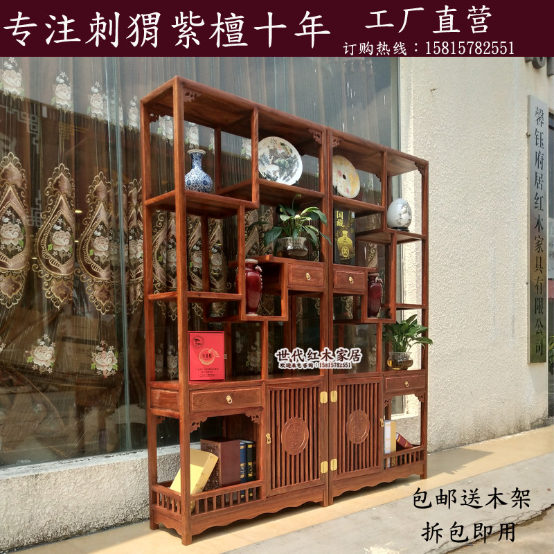 Mahogany Bogu shelf furniture new Chinese living room display cabinet hedgehog red sandalwood Xiaoduobaoge rosewood storage partition