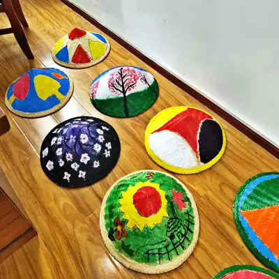 Kindergarten hanging ornaments decoration bucket hats diy hand painted bamboo aerial environment layout corridor creative wall