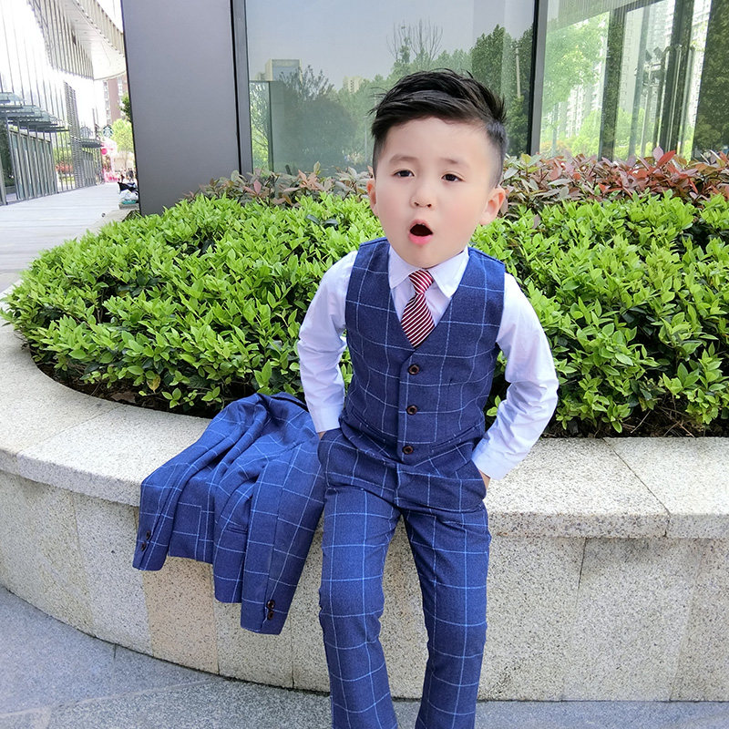Wine red plaid three-piece coat vest pants blue plaid three-piece coat vest pants gray plaid three-piece coat vest pants wine red plaid four-piece coat vest pants shirt blue plaid four pieces