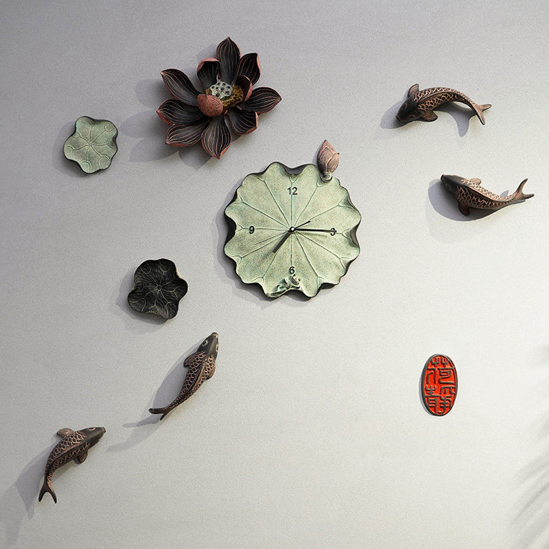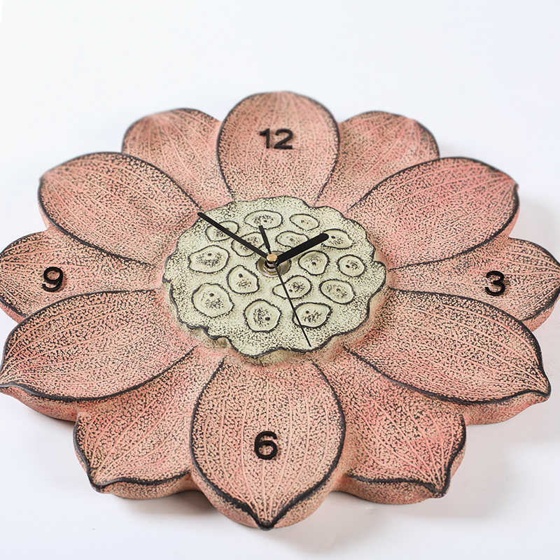 Creative lotus wall clock New Chinese living room dining room bedroom decoration silent watch wall wall clock Wall decoration pendant