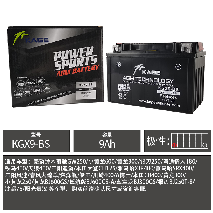 Caget KAGE TR400 Motorcycle Cell 12V9Ah YTX9-BS KGX9-BS Battery