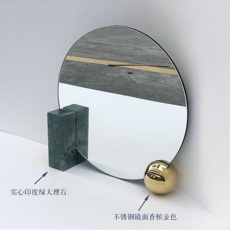 MAISONDADA Light Luxury Makeup Mirror Creative Personality Desktop Exquisite Indian Green Marble Base Round Mirror