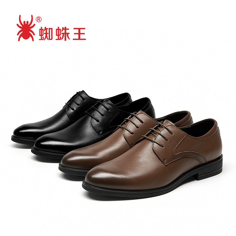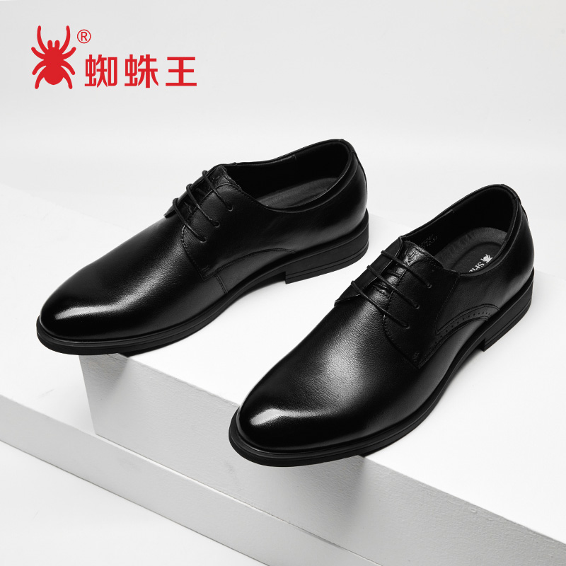 Spider King Men Shoes Spring New Men Business Positive Dress Leather Shoes Men Genuine Leather Lace Wedding Shoes Korean Version Trend Breathable