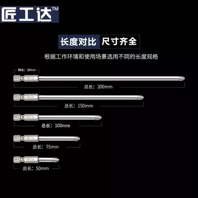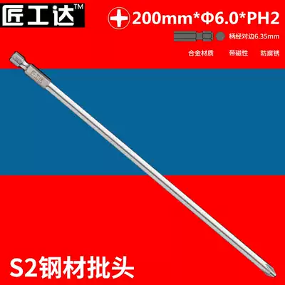 Jianggongda Taiwan S2 steel extended cross screwdriver strong magnetic 20 cm extra long electric screwdriver Pneumatic screwdriver screwdriver head