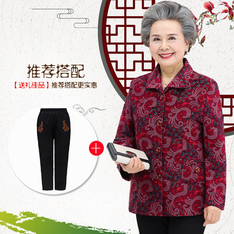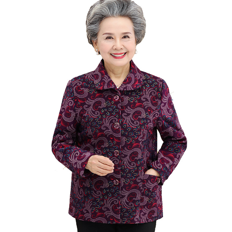 Middle Aged Spring Autumn Dress Lady Jacket mother dress Long sleeves 60-year-old 70 Elderly clothes Grandma clothes Dang clothes 80