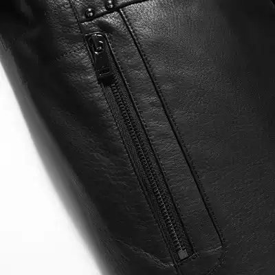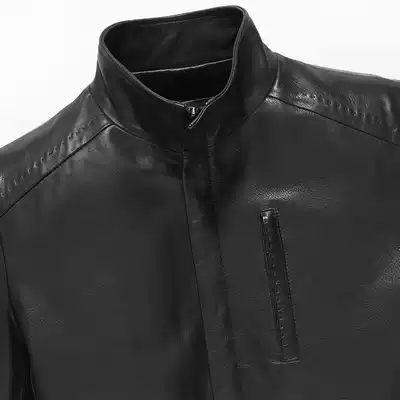 Snow Leopard stand-up collar Goatskin men's leather leather jacket Medium and long version stand-up collar business slim jacket Windbreaker men's jacket