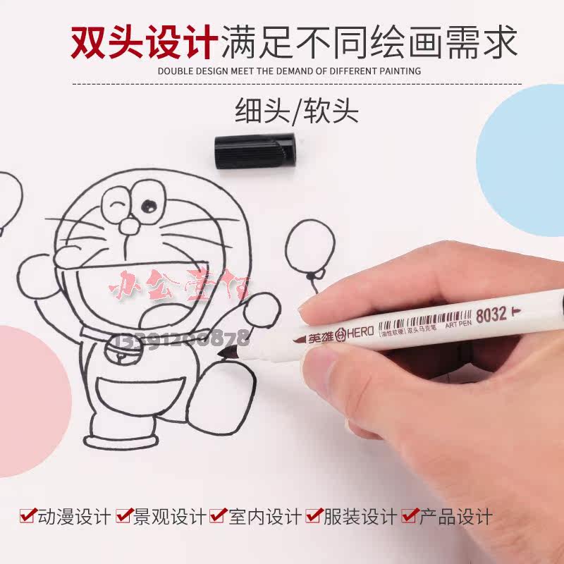 Hero 8032 Water-based Mike Pen Suit Watercolor Soft Pen Student Hand-drawn Design Drawing Pen Action Comic Brush