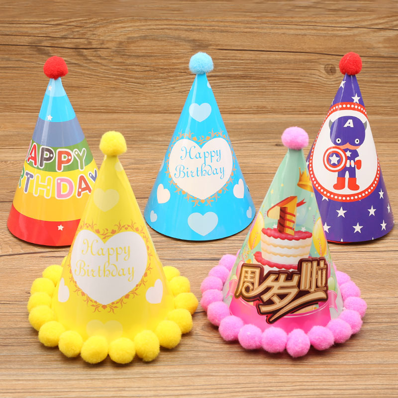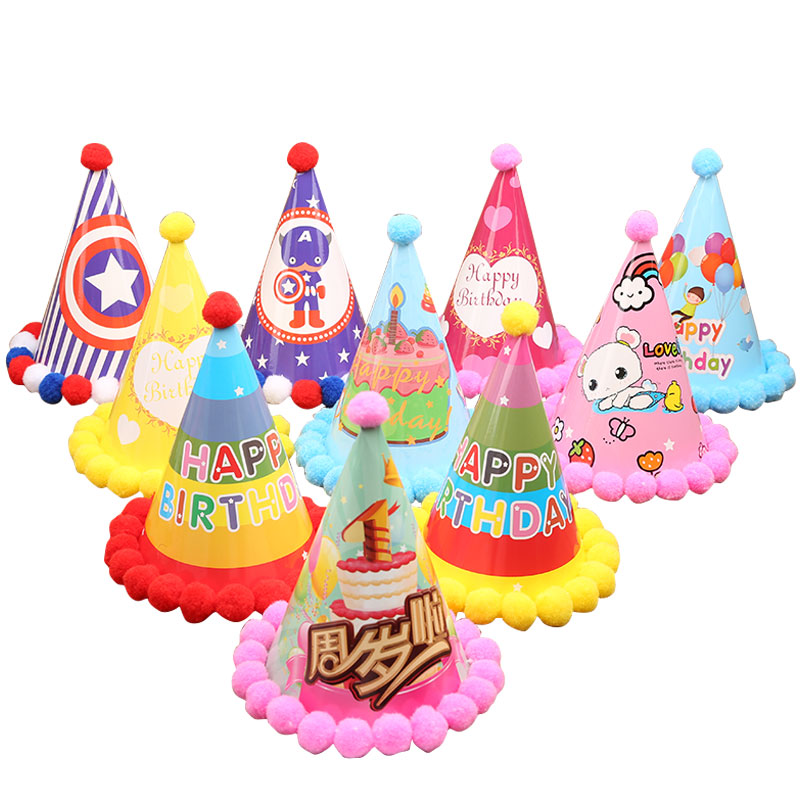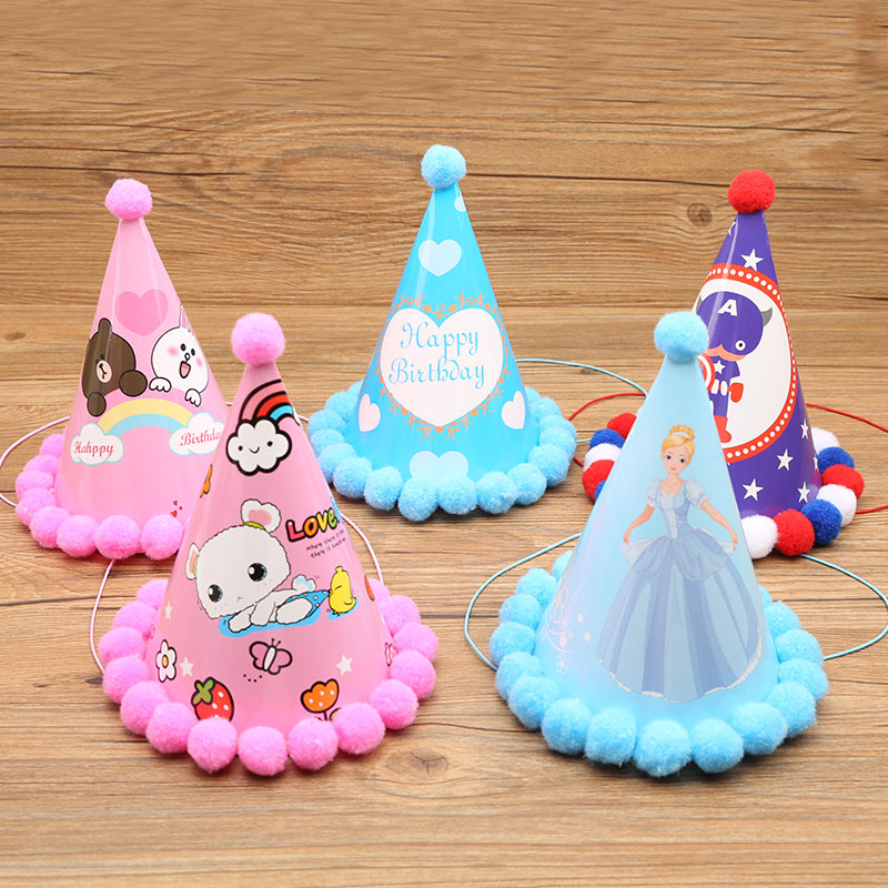 Cartoon Hair Ball Birthday Cake Hat Adult Children Princess Theme Creativity Week Old Party Decorations Wholesale