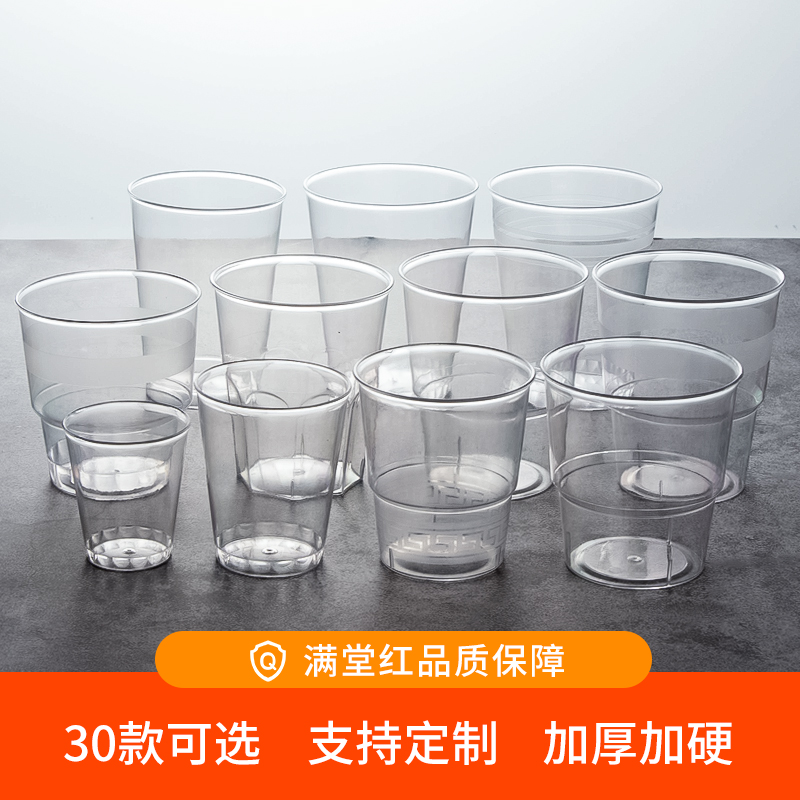 Disposable aviation cup thickness transparent hard plastic cup customized business entertainment KTV printed wine cup 90