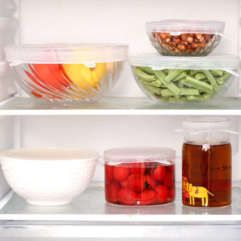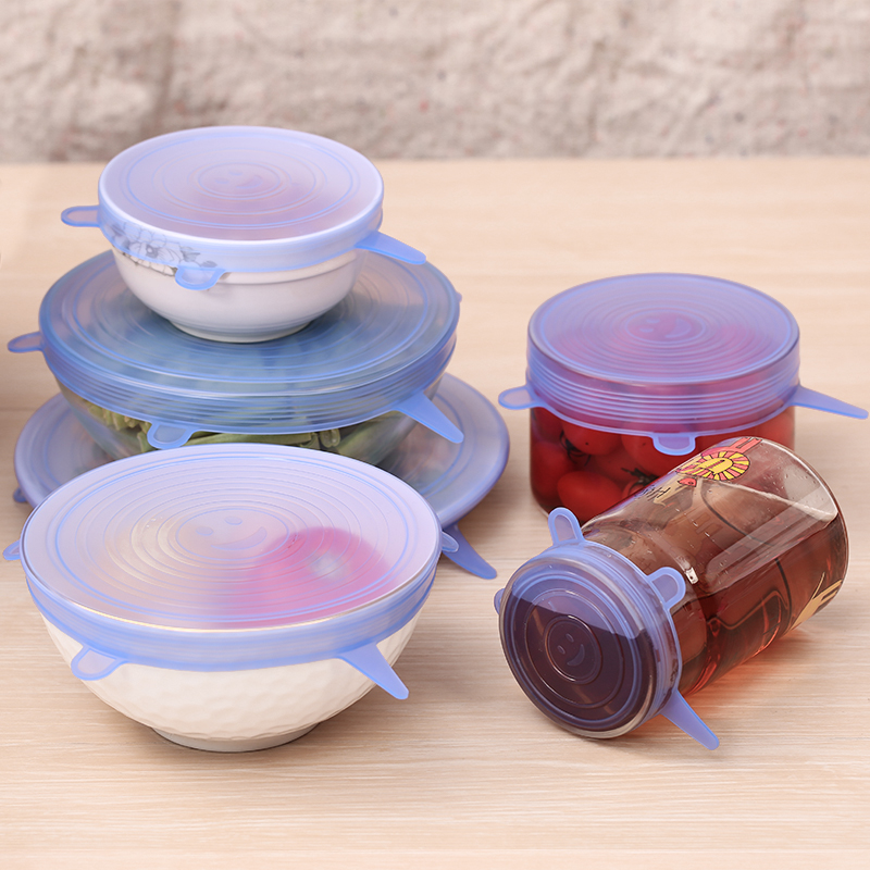 Aimino Food Grade Silica Gel Preservation Lid Seal Bowl Cover Reusable Stretch Universal Round Transparent 6 Pieces H