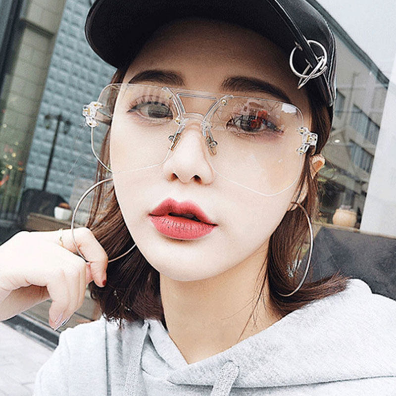 Xiaohongshu same style glasses trendy driving men's frameless flat mirror Hong Kong style couple with myopia sunglasses female