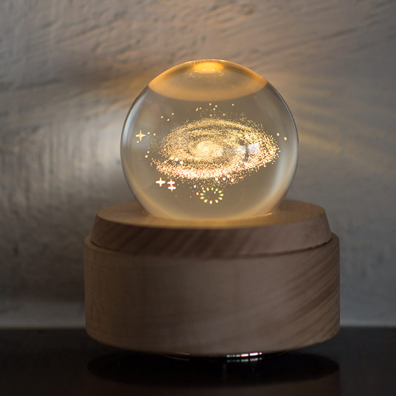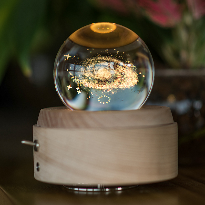 Starry sky girl heart crystal ball music box Rotating music box with lettering night light to send teachers and classmates graduation gifts