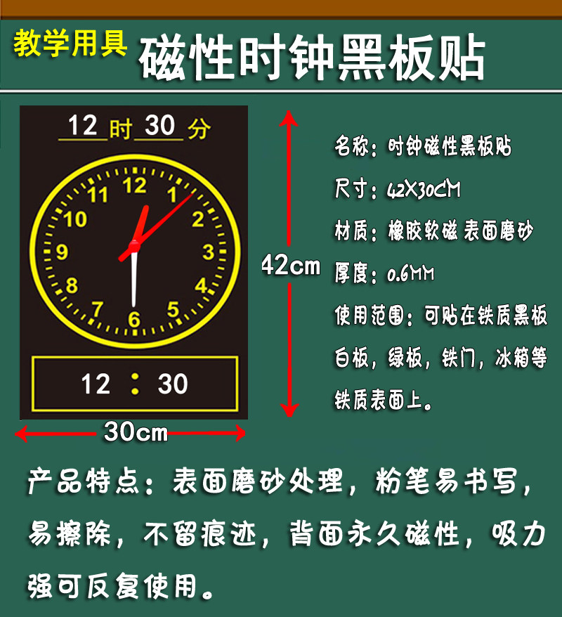 Magnetic teaching clock household teaching aids time chart blackboard stickers 42*30cm first grade watch teaching materials