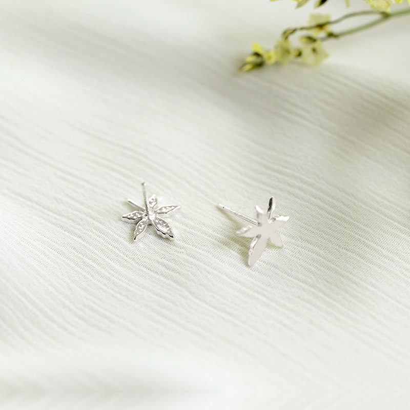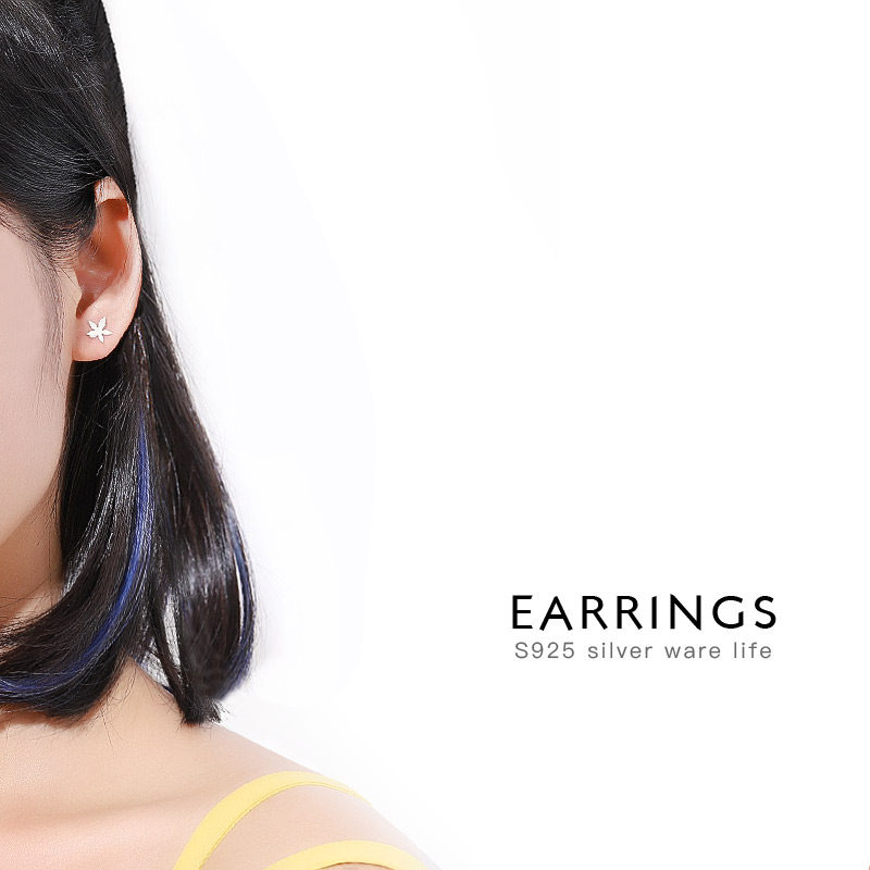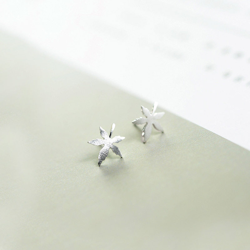 Maple Leaf ear nail s925 pure silver maple leaf vegetarian silver ear decoration small frescoed leaves silver ear nail minimalist to send girlfriend-Taobao