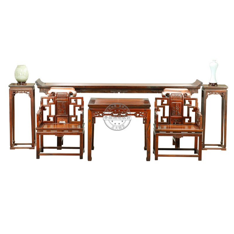 Zhengdaming Ming Yi High - grade red acid branch of high - grade red wood furniture in the middle - hall of six pieces of hall