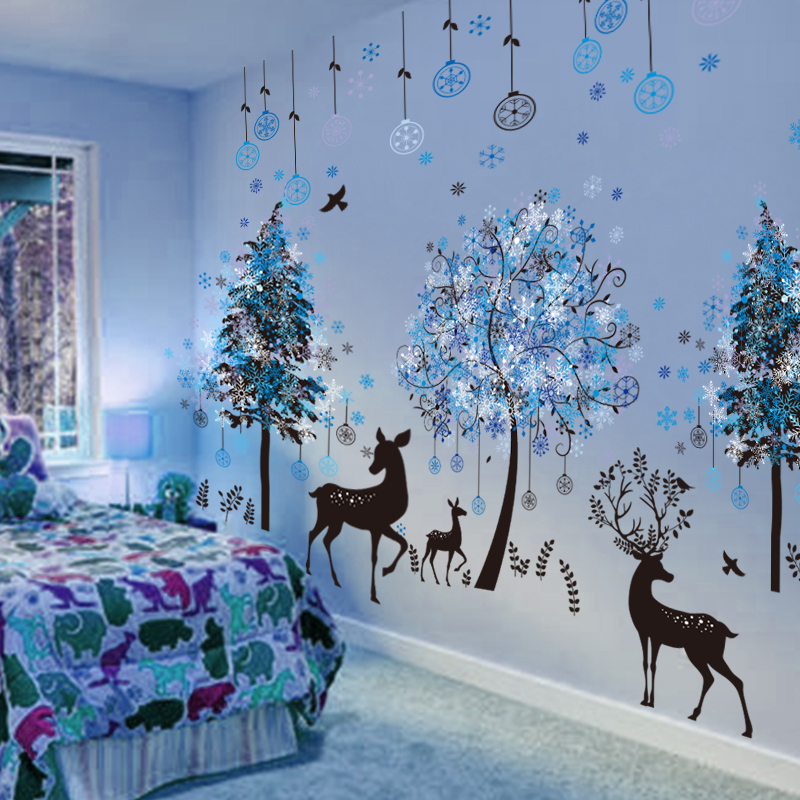 Starry Sky Deer Snowflake Forest Blue Snowflake Deer Dreamy Piano Streetlight Girl and Fawn A Blue Snowflake Deer Bubble Girl Smile Beautiful Life Photo Sticker Forceful Chandelier Snowflake