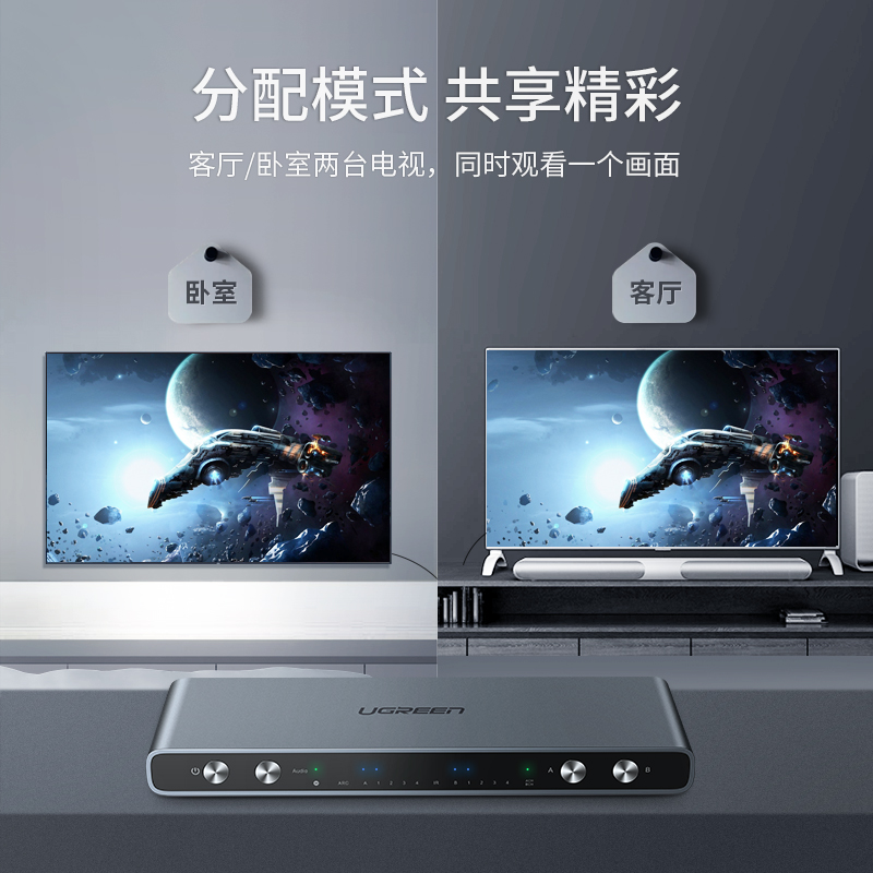 Green union HDMI matrix HDMI splitter 4 in 2 out 3d HD switcher 4 in 2 1080P remote control audio
