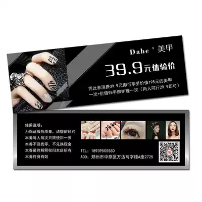 Nail art and eyelash shop opening promotion extension experience card Custom card coupon custom voucher production design