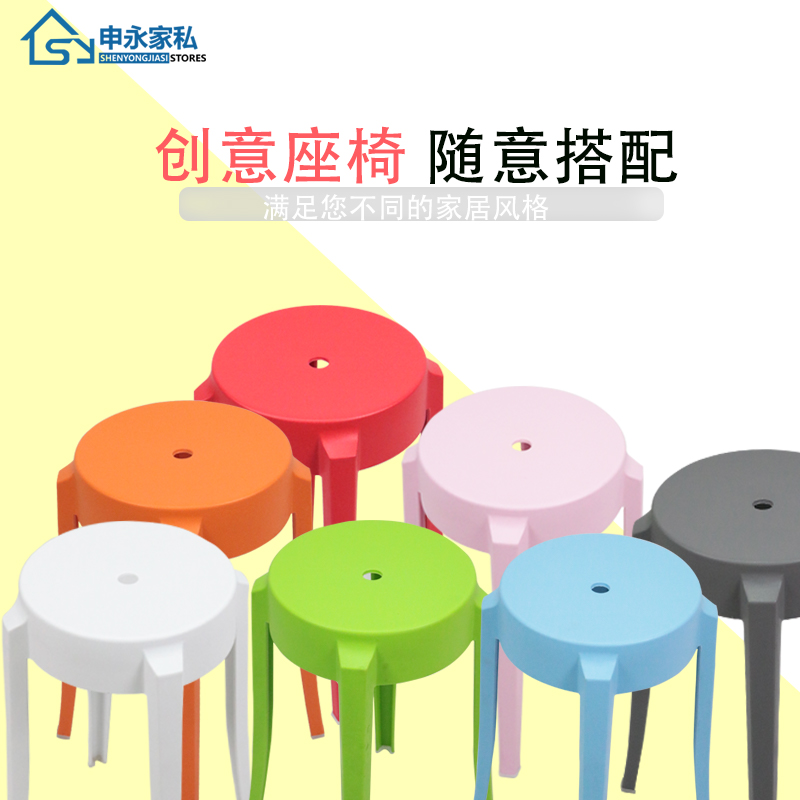 Shenyong plastic round stool Creative seat fashion simple household multi-color plastic round stool stackable dining stool