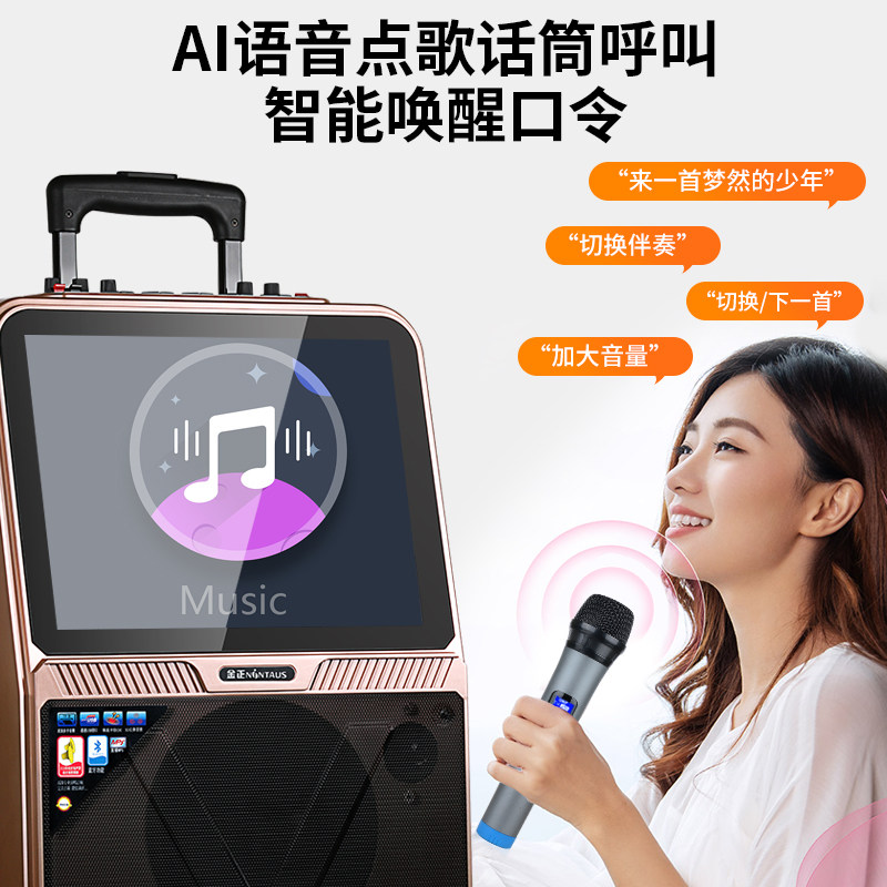 Kim Jong Square Dance Sound with Display Screen Large Screen High Power High Volume Bluetooth Net Red K Song Home Small Pull Rod Portable Dance Performance with Wireless Microphone Mobile Outdoor Speaker