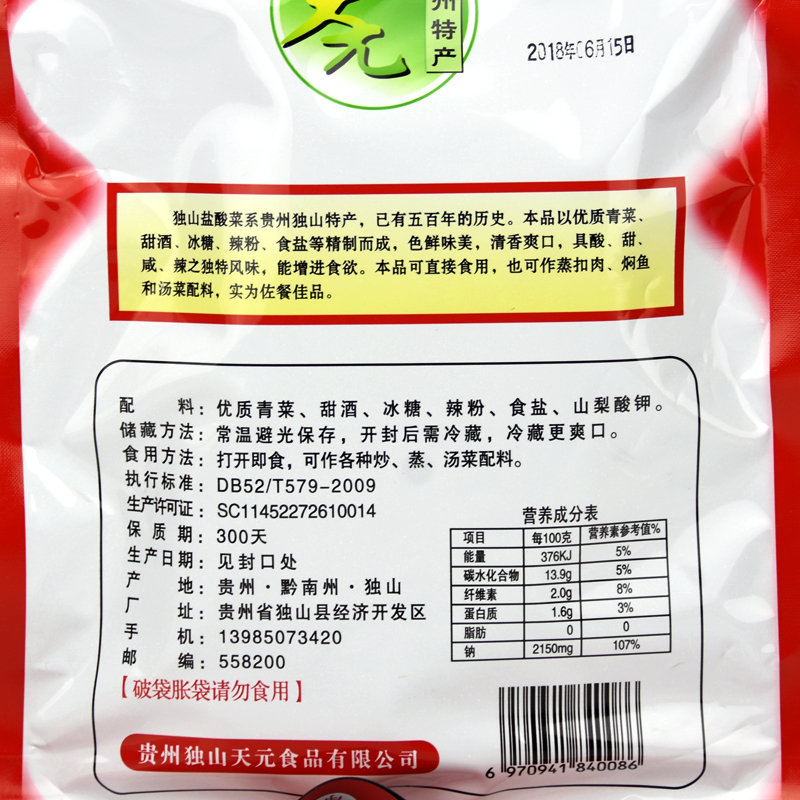 Guizhou cooked a single mountain hydrochloric acid 360 grams 1 bag of sour salty and salty date fresh