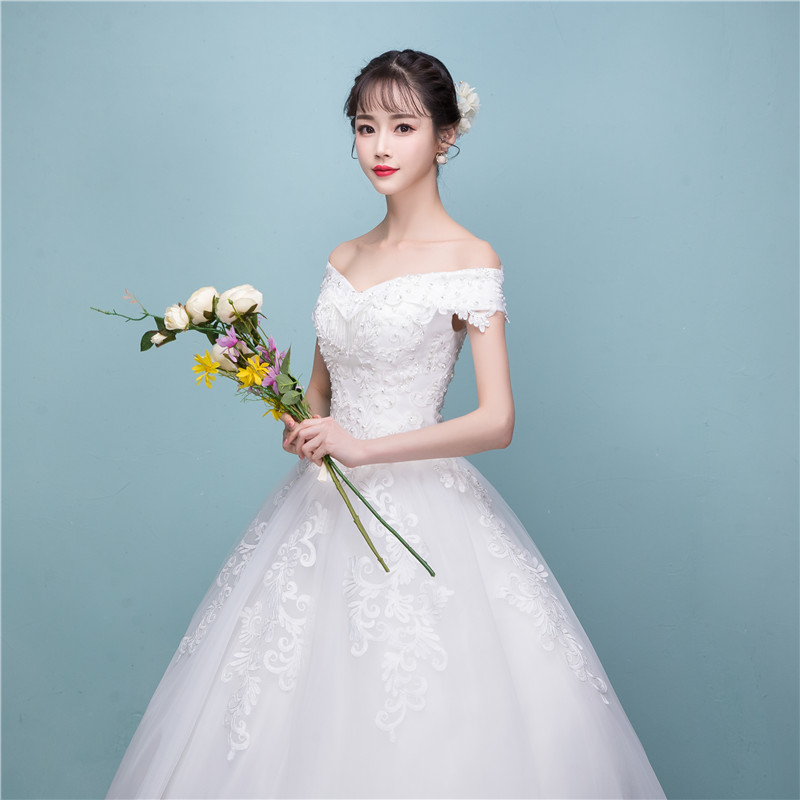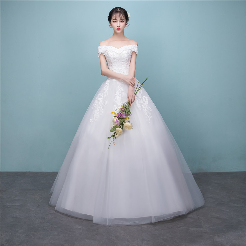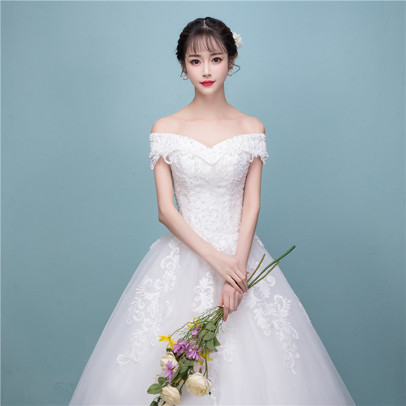 Wedding dress 2021 new bride one shoulder Korean slim slim simple Qi luxury forest summer