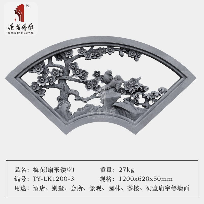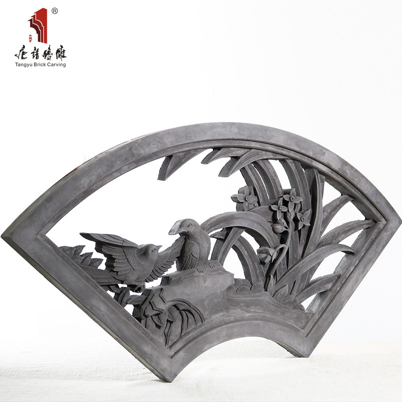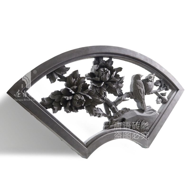 Tang language brick carved imitation ancient single-sided sector hollowed-out garden wall wall wall decoration pendant emblems hollowed-out flower window-Taobao