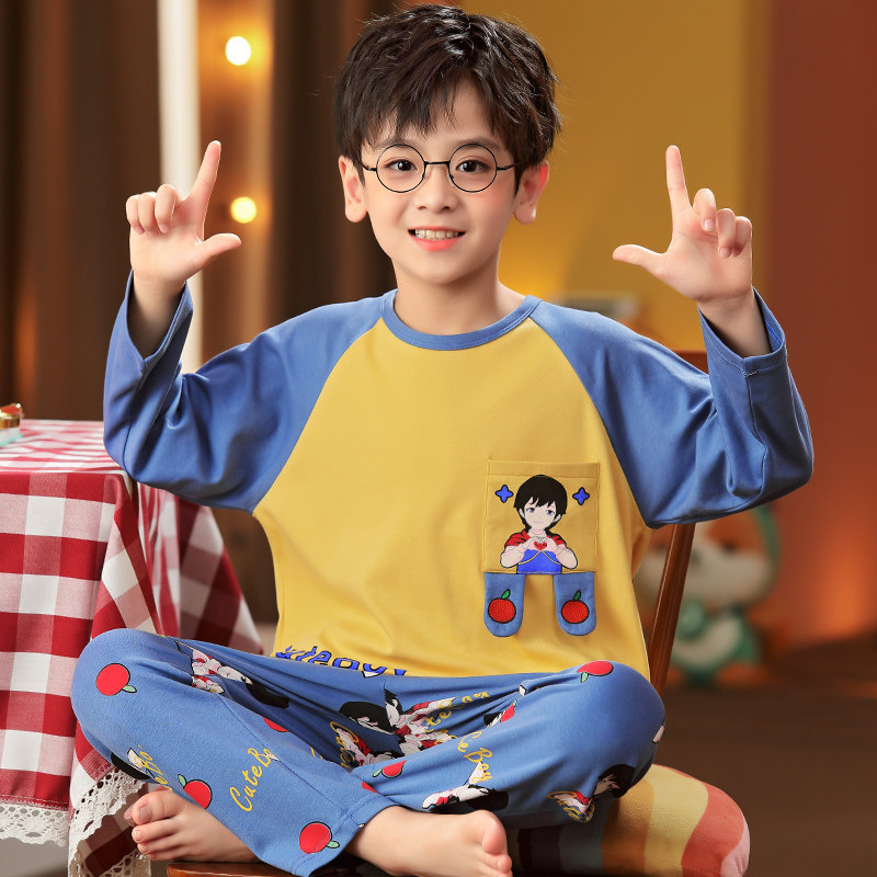 Child Sleepwear Spring Autumn Season Boy Cartoon Boy Pure Cotton Kid Autumn Winter Long Sleeve Big Boy 12 Year Old 15 Air Conditioning Suit