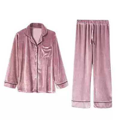 Gold velvet couple pajamas women's spring and autumn thin long-sleeved fashion high-end casual can be worn outside men's home service suit