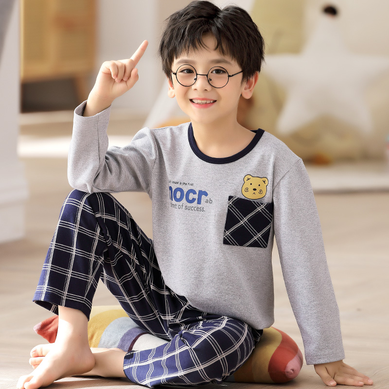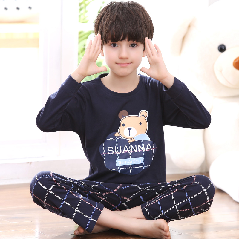 Spring and autumn youth pajamas boy long-sleeved pure cotton junior high school boy middle and big children 12 years old and 15 autumn home clothes