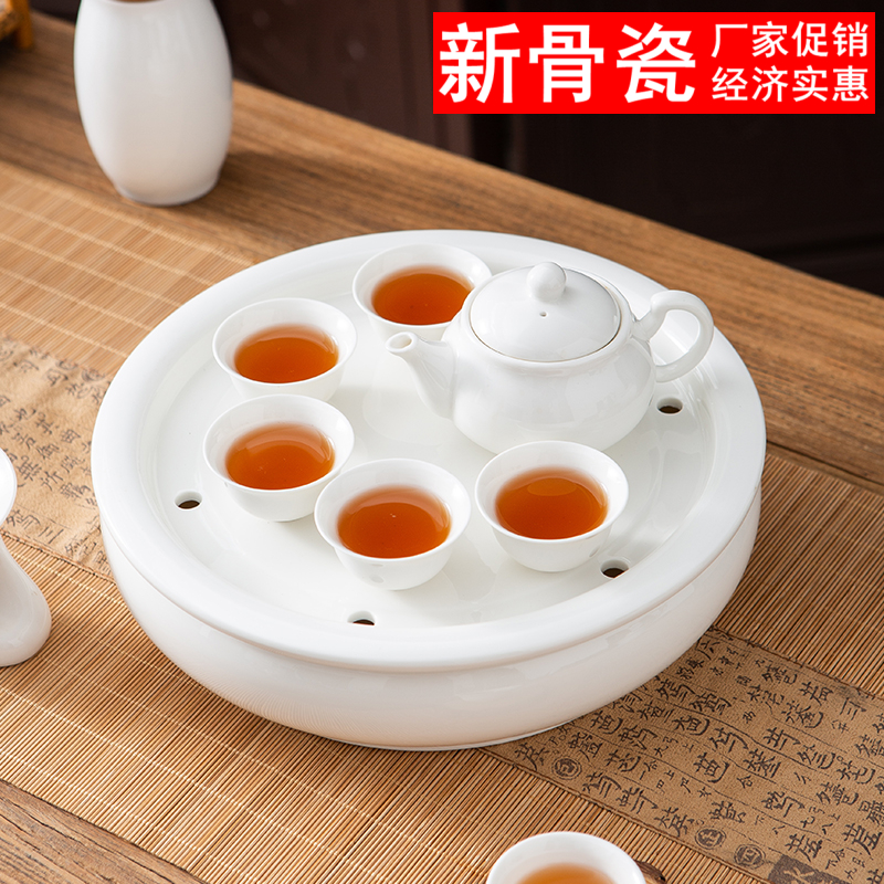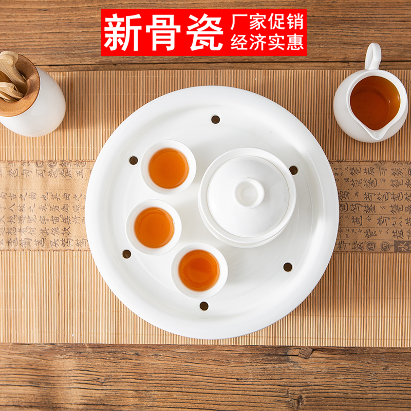 Whole set of Chaoshan White Porcelain Kung Fu Tea Furniture Set Group Home Ceramic Teapot Tea Cup Round Tea Tray Brief Tea Set Group