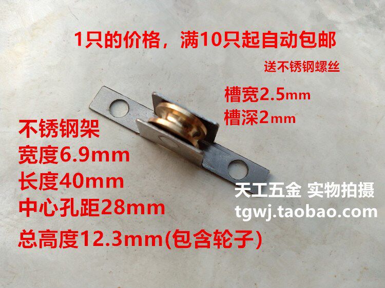 Aluminum alloy push-pull translational mosquito screen gauze door pulley 7 mm wide stainless steel bracket shaft real copper groove wheel