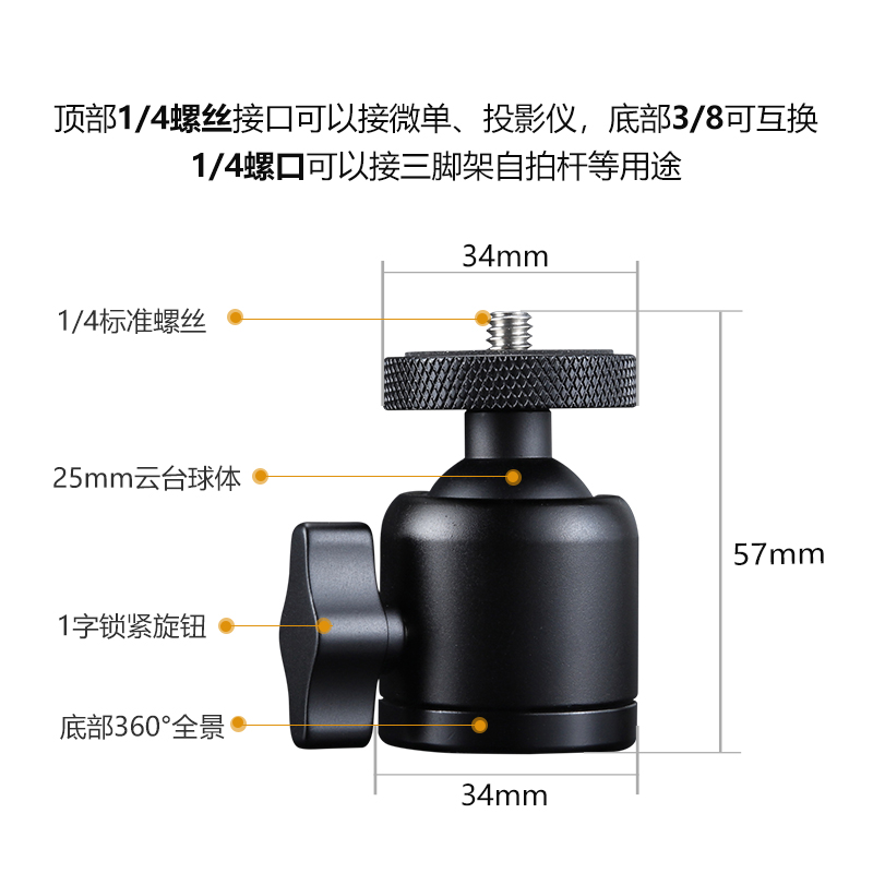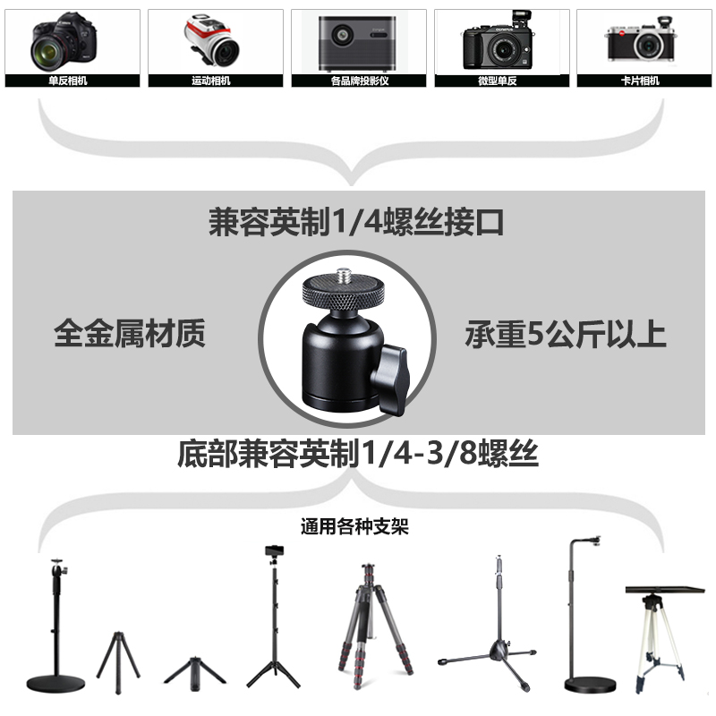 Universal spherical tripod head metal micro single eye camera tripod small single eye digital Sony Canon camera lamp projector accessory