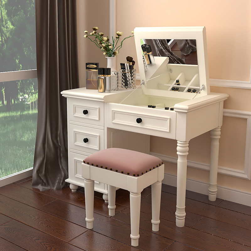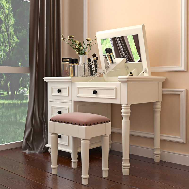 American country solid wood vanity table Mini clamshell makeup table Bedroom simple modern white makeup table Small apartment type