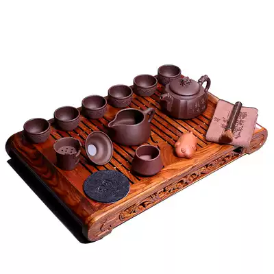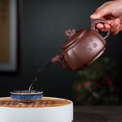 Square pumping angle set (excluding tea tray) Pot body engraved with Houde Zaiwu Square pumping angle set (excluding tea tray) Pot body engraved with quiet Zhiyuan Square pumping angle set(including Ming Dian Rosewood tea tray) Pot