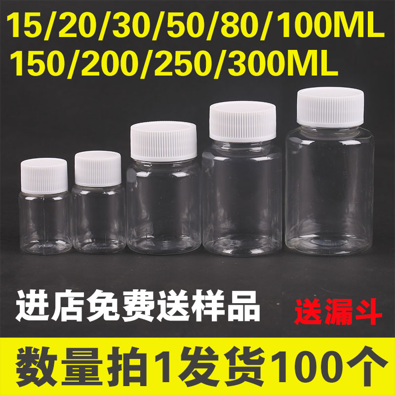 Transparent 15 ml * 100 20 ml * 100 30 ml * 100 30 mL scale * 100 50 ml round bottle * 50 to get 80 millilitres of water in the round bottle * 40
