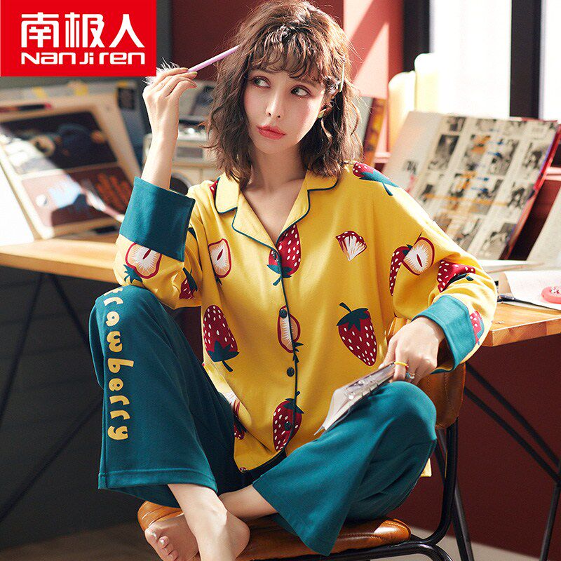 Antarctic long-sleeved pajamas women's spring and autumn cotton two-piece suit Autumn and winter women's cotton home clothes can be worn outside