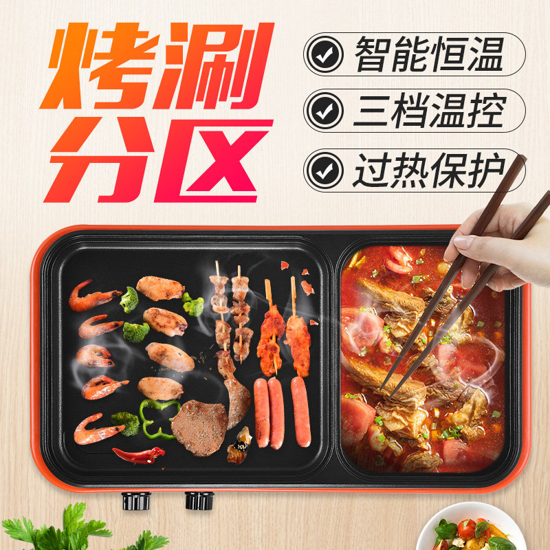 Korean electric oven Household commercial smoke-free electric baking tray Multi-function shabu-shabu hot pot Barbecue all-in-one pot Non-stick pot
